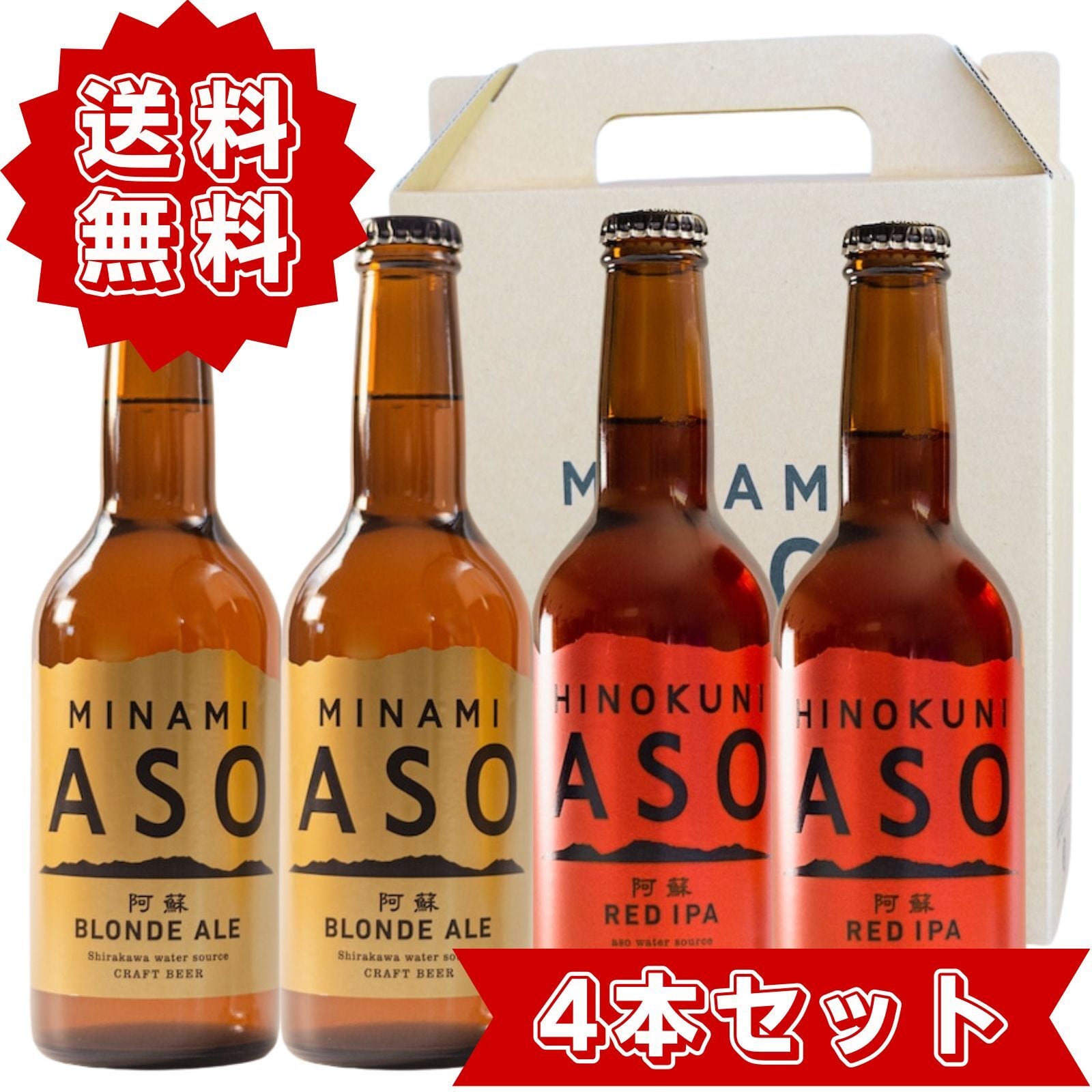 【4本セット】阿蘇ブロンドエール 阿蘇レッドIPA 2種類 飲み比べセット ギフト用 専用ボックス入り 国産 クラフトビール 330ml 4本入り メーカー公式 箱入り