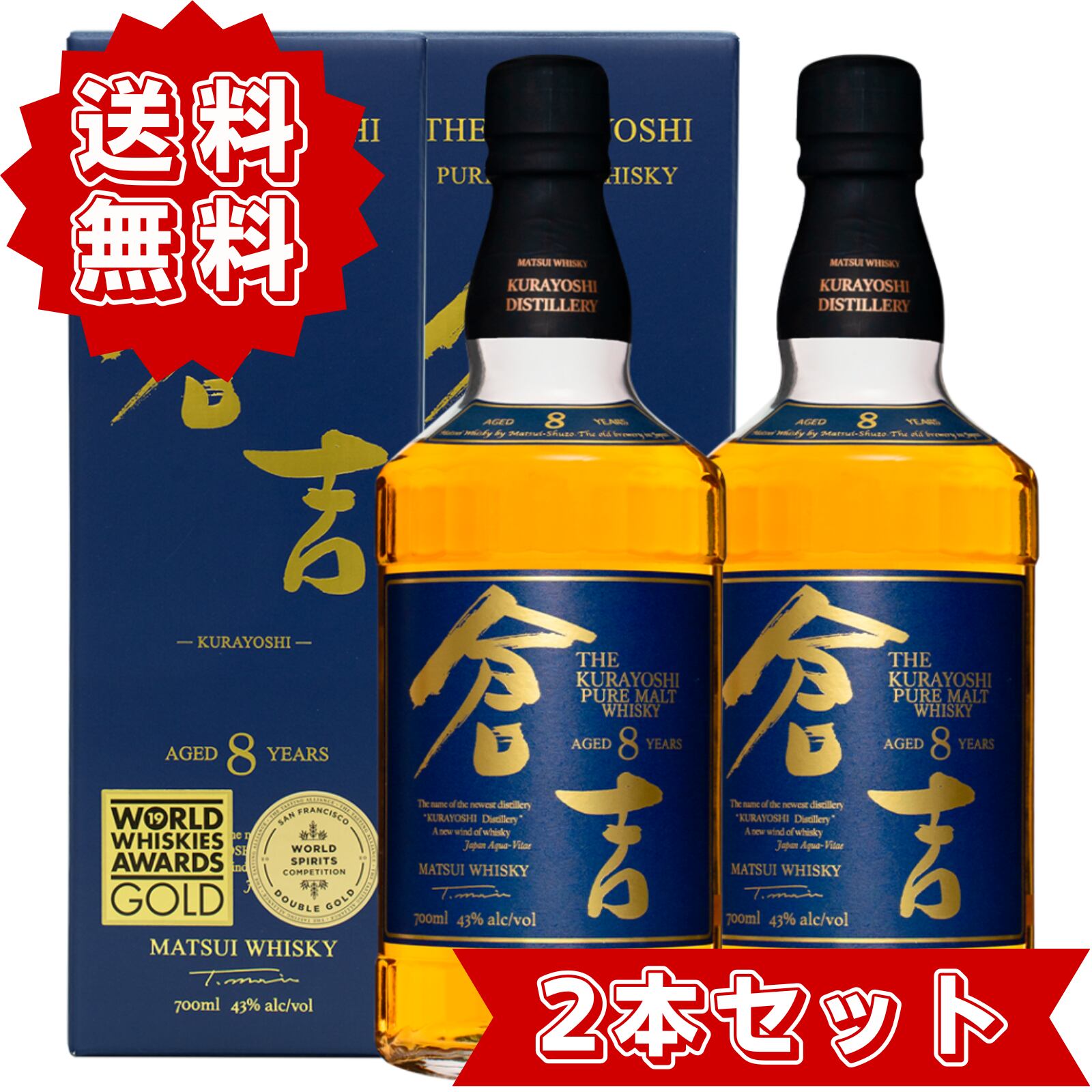 【2本セット】倉吉8年 松井酒造 ピュアモルトウイスキー 43度 700ml 正規品 国産 ウイスキー 長期熟成 ホワイトオーク樽 倉吉蒸溜所 メーカー公式 whiskey