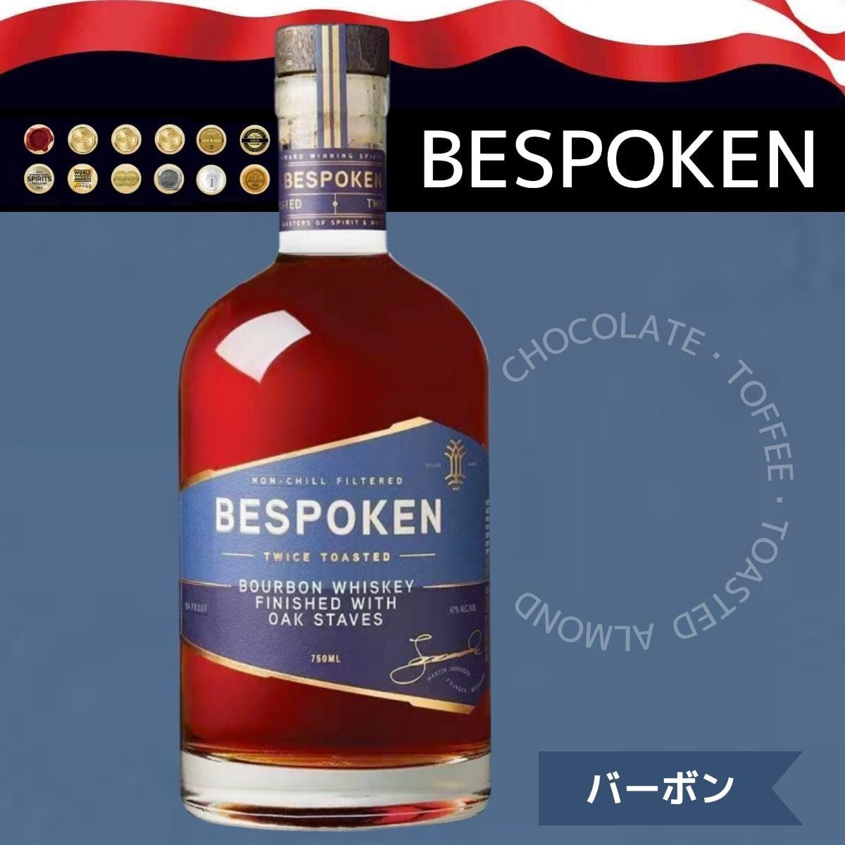 ビスポークン バーボンウイスキー 正規品 750ml 47度 100プルーフ プレミアム バーボン 革新的 高級 アメリカ産 洋酒 Bespoken Spirits Bourbon Whiskey【ギフト プレゼント 誕生日 還暦 結婚祝い パーティー 記念日】