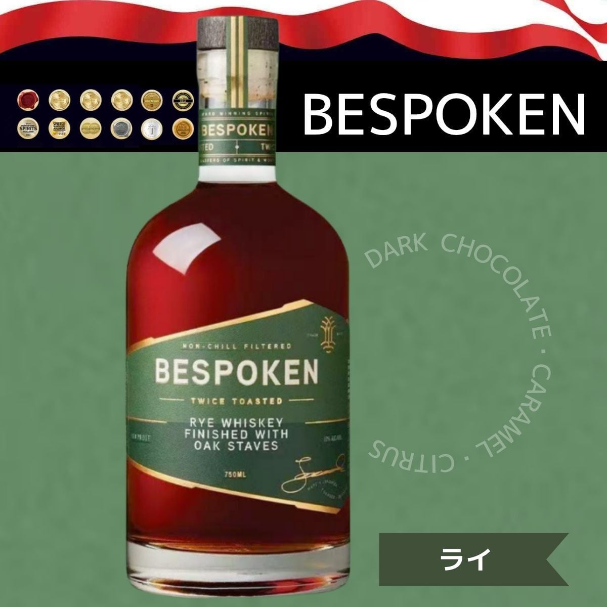 ビスポークン ライウイスキー 正規品 750ml 50度 プレミアム ライ麦 ウイスキー 個性的 新生代 高級 アメリカ産 洋酒 Bespoken Spirits Rye Whiskey【ギフト プレゼント 誕生日 還暦 結婚祝い パーティー 記念日】