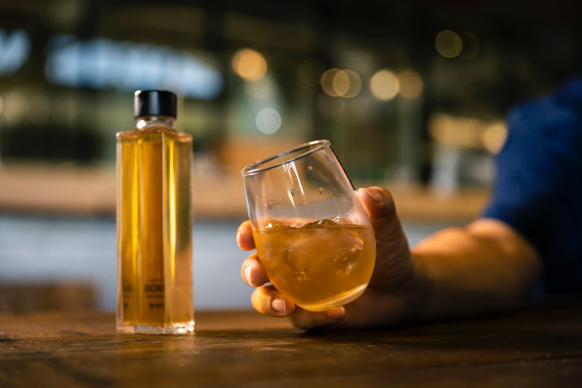 木の香りを纏った日本酒「BOKKA」。純米大吟醸の日本酒をベースに、森林にあるさまざまな木の香りを特殊な製法で燻製させて染み込ませてできた、他にはない日本酒リキュールです。