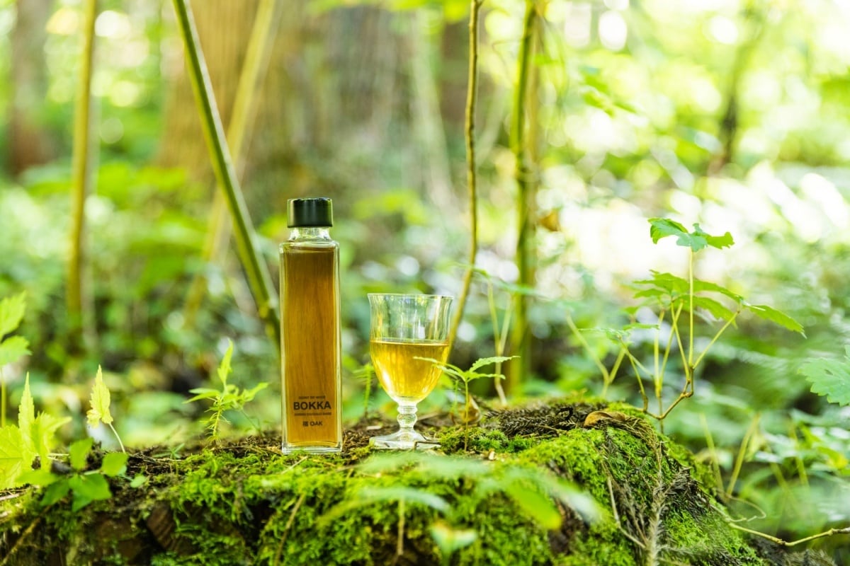 木の香りを纏った日本酒「BOKKA」。純米大吟醸の日本酒をベースに、森林にあるさまざまな木の香りを特殊な製法で燻製させて染み込ませてできた、他にはない日本酒リキュールです。