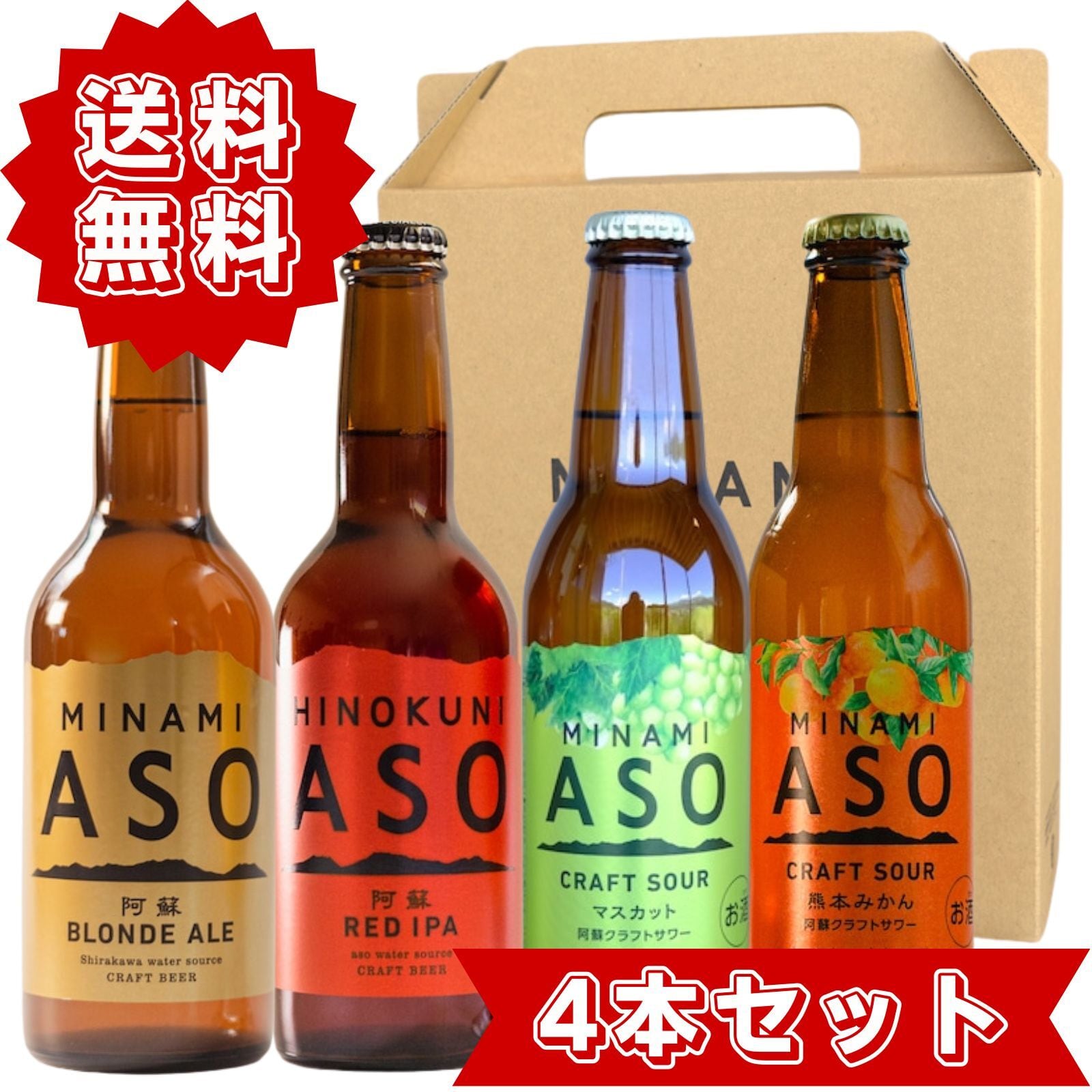 \\ 初回30%OFF //【お得な定期便】【4本セット】阿蘇ブロンドエール 阿蘇レッドIPA 阿蘇クラフトサワー 熊本みかん&シャインマスカット 4種類 飲み比べセット ギフト用 専用ボックス入り 国産 クラフトビール クラフトサワー 330ml 4本入り メーカー公式 箱入り