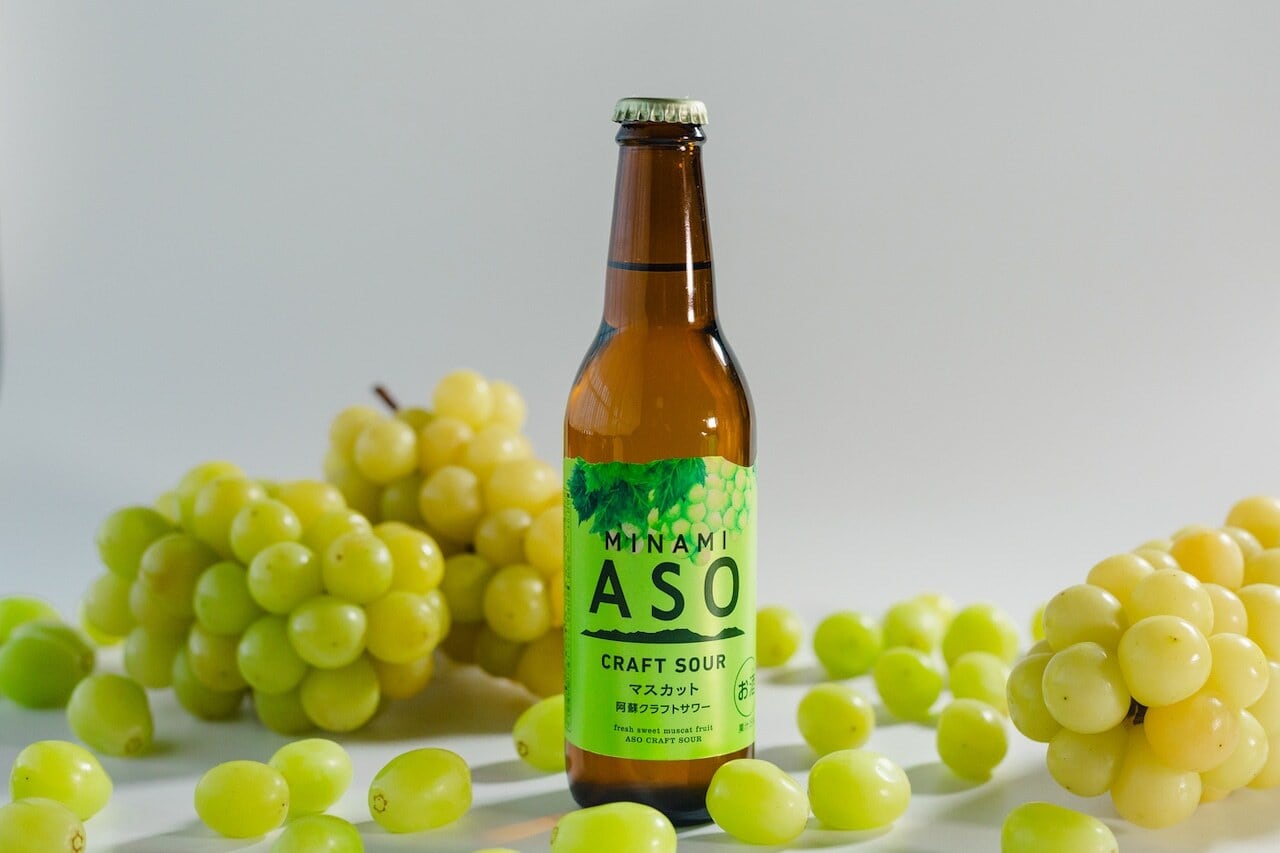 美味しい阿蘇白川水源の水をベースに、熊本県産シャインマスカットを原料の一部に使った贅沢なクラフトサワー(発泡性リキュール)。アルコール度数は控えめで、マスカット果汁をふんだんに使用したジューシーさが特徴です。さわやかな飲み口で、リラックスタイムにぴったりの一品です。