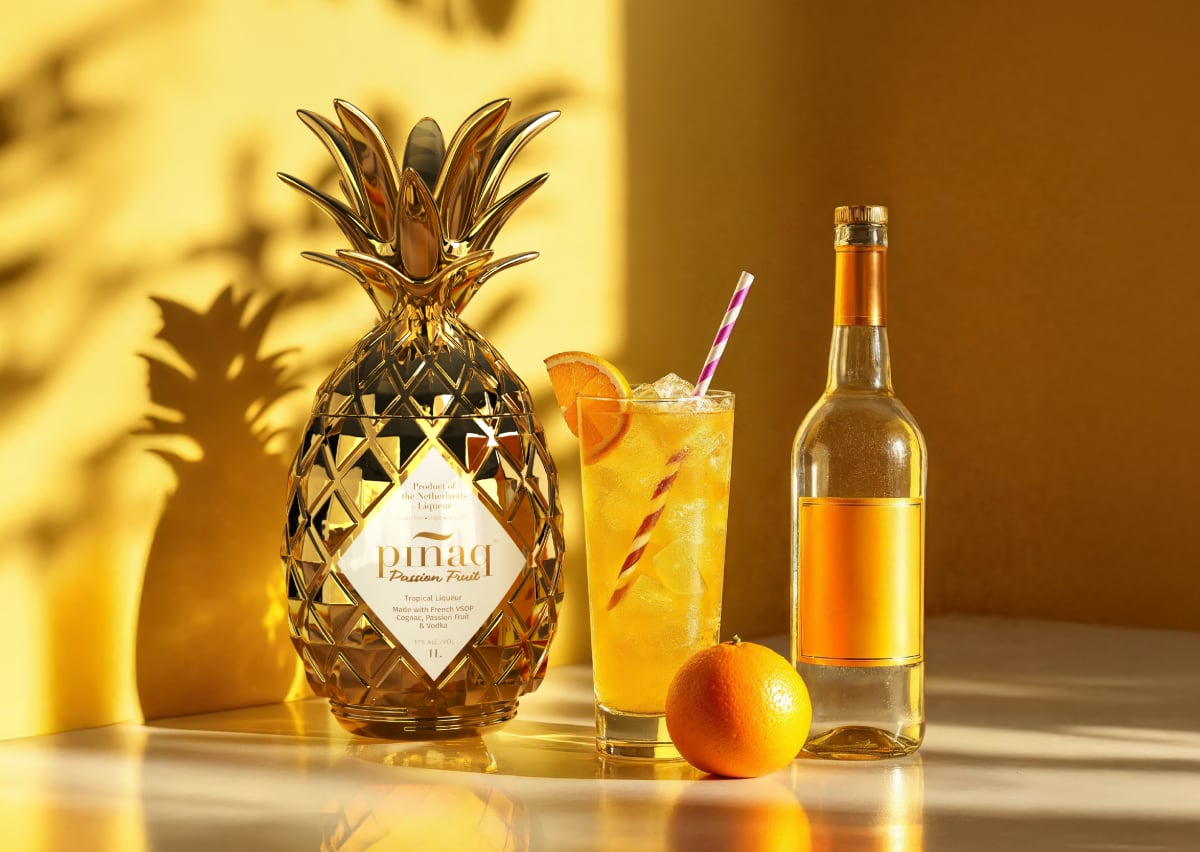 「ピニャック ゴールド」は、トロピカルフレーバーと印象的なパイナップル型ボトルで知られるプレミアムリキュールブランド『Piñaq(ピニャック)』が誇る代表作。パイナップルの甘い香りと南国フルーツの爽やかな味わいが楽しめる、高級トロピカルリキュールです。メタリックが煌めく華やかな見た目も大人気で、世界各地で人気を集めています。